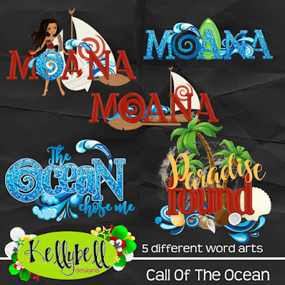 Inside the kit you will find 15 beautiful patterned papers and 2 full alphas. Over 60 elements including coconuts, drum, tropical foliage, Te Fiti heart, HeyHey, Maui’s fish hook, Moana doll, oar, sail boat, palms, ropes, sand, sea rocks, shells, starfish, turtle, waves and more!