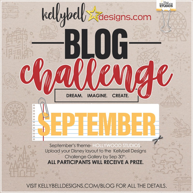 We are starting off this month with another fantastic blog challenge! Monthly blog challenges are a great way to use your Kellybell Designs products, make some fun layouts, and earn a participation prize. This month’s theme is HOLLYWOOD STUDIOS.