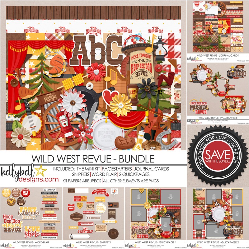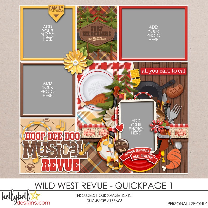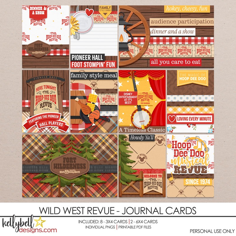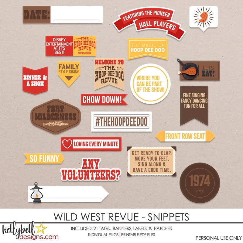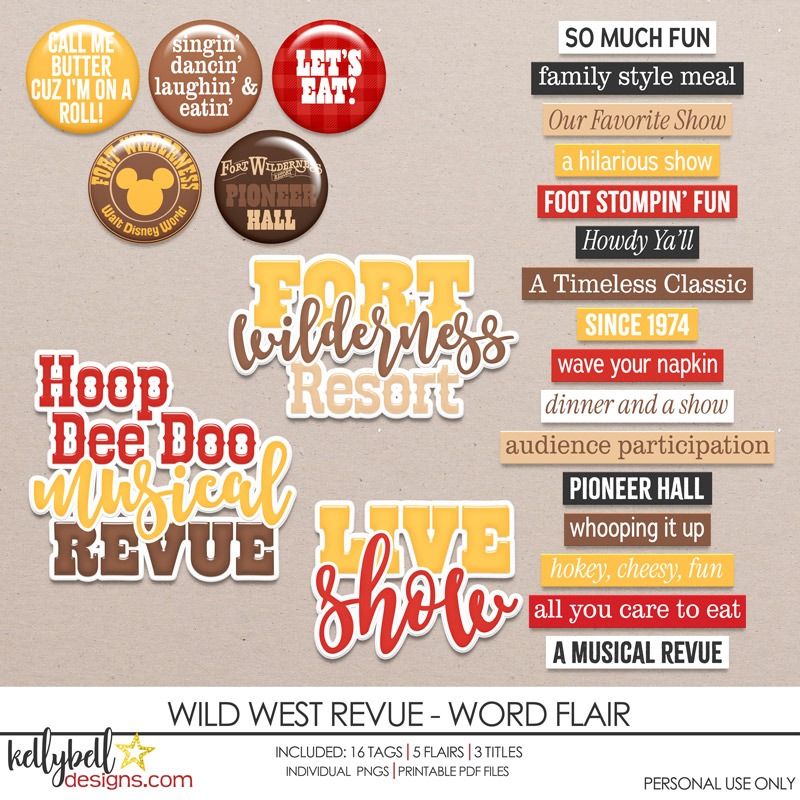 This week’s collection celebrates one of Walt Disney World’s favorite family shows! Wild West Revue will complement your photos of The Hoop Dee Doo Revue at Fort Wilderness Resort. Document the show’s singing and dancing, delicious BBQ meal, and fun crowd participation. This collection would also work well with Fort Wilderness and Wilderness Lodge resorts, Frontierland, and general western themes. The collection includes a Mini-Kit with alpha, Journal Cards, Page Starters, Word Flair, Snippets, and 2 Quick Pages. My digital files can be used by both digital scrappers and mobile app scrappers. Traditional paper scrappers and craft artists can use these digital files for cut and paste using a Cricut or Silhouette cutting machine. Finally, if you want it all, there is a bundled collection with all 7 products at a discounted price!