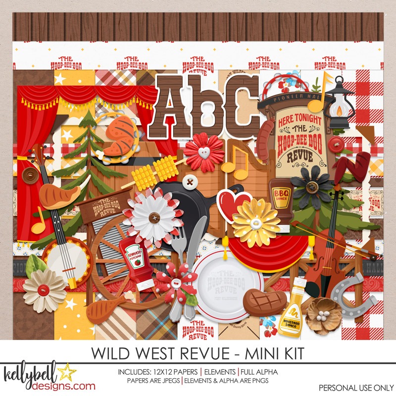 Inside this kit are 10 themed patterned and solid papers, an alpha set, plus over 50 themed elements including banjo, barrel, BBQ sauce, brisket, bunting, cast iron skillet, chicken, corn, curtains, fence, fork, heart, horseshoe, ketchup, knife, lantern, music, mustard, plate, ribs, saloon doors, sausage, sign, tamborines, trees, violin and bow, wagon wheel, washboard, and much more.